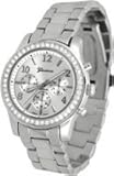 Online Geneva Chronograph Look with Crystals..SilverTone Metal Link Prices Review